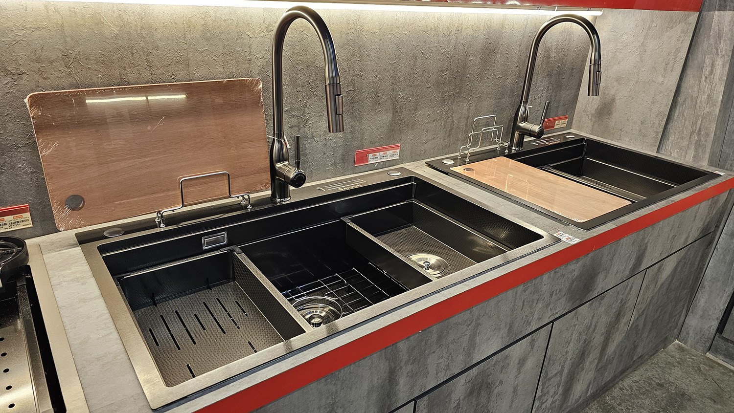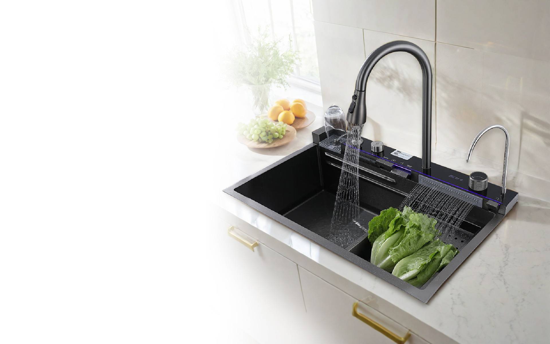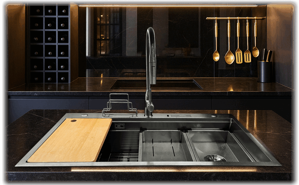 Santovena creates premium, multi-purpose kitchen sinks that unite high-grade stainless and granite composites with precision engineering. Every basin is scratch-, heat- and stain-resistant, tested far beyond industry standards to guarantee long-lasting brilliance. Our waterfall workstation layout maximises counter space, streamlines food prep and keeps clean-ups effortless—giving homeowners and designers a luxury kitchen sink that delivers professional performance and showroom-worthy style in one elegant package.