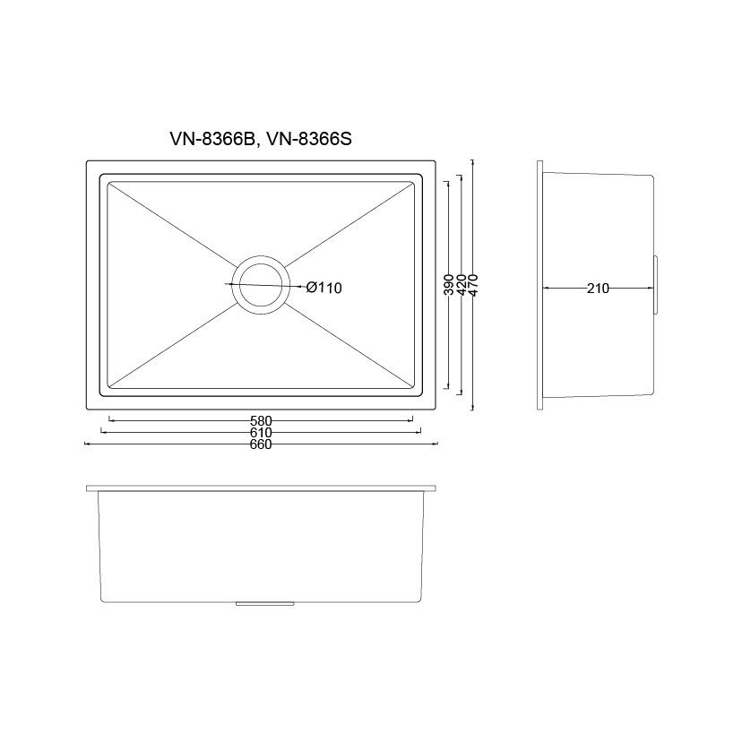 Description: Nano Millet Sink (L) Dimension: 66 x 47 x 21cm Material: 304 Stainless Steel Color: Black