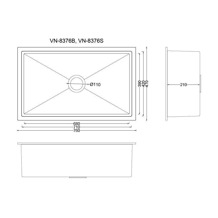 Description: Nano Millet Sink (XL) Dimension: 71 x 47 x 21cm Material: 304 Stainless Steel Color: Stainless Steel